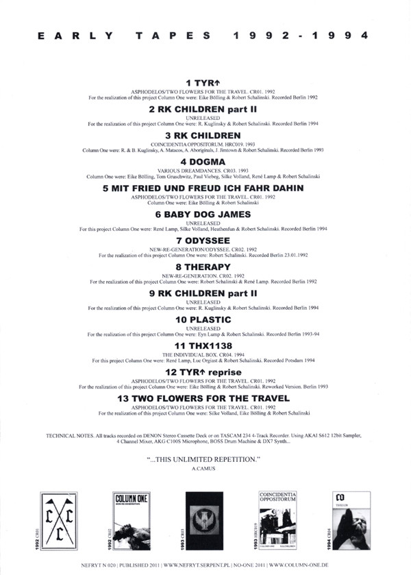 Limited edition of 500 copies. This CD is also available as a part of special box "No One" released by Column One.