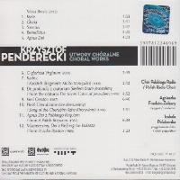 Płyta wydana w związku z Jubileuszem Krzysztofa Pendereckiego w roku 2013 r., zawiera utwory chóralne Mistrza (a cappella)z różnych okresów jego twórczości. Chór Polskiego Radia pod dyrekcją Agnieszki Franków –Żelazny nagrał m.in. mszę Missa Brevis, Pieśń Chrubinów, hymny: O gloriosa Virginum, Veni Creator, a także chóralne fragmenty wielkich dzieł kompozytora: De perofundis (z oratorium Siedem Bram Jerozolimy) , Agnus Dei(z Polskiego Requiem), Miserere mei , Dei (z Pasji wg św. Łukasza). Znakomite nagranie opatrzone jest wnikliwym komentarzem Małgorzaty Janickiej-Słysz na temat twórczości chóralnej Krzysztofa Pendereckiego.