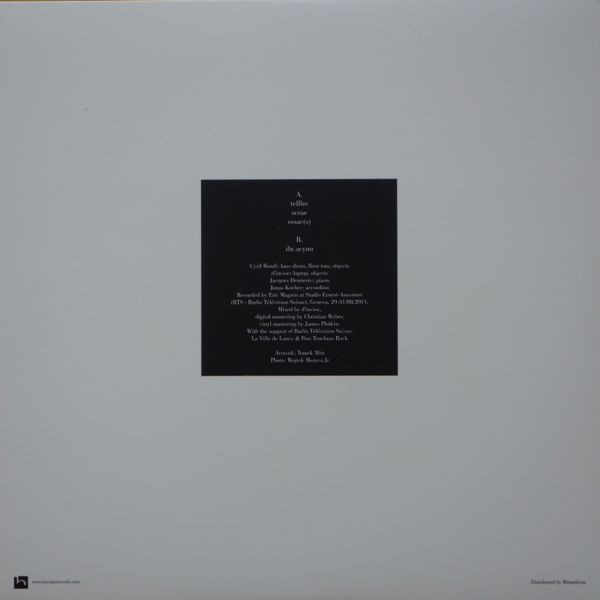 Warm air before thunderstorm is lighter than cold one, so "Öcca" is the Bocian's the most quiet record. It resembles the sames feelings that Aaron Dilloway and Jason Lescalleet developed on "Grapes and Snakes" - dynamics are low, which creates enourmous tension and suspense, waiting for something to come. Although instrumentation is completly diffrent - Cyril Bondi, d'incise, Jaques Demierre, Jonas Kocher made this nervous atmosphere by recording many sessions and choosing best one of their free improvisation on percussion, an accordion, piano and laptop. Perfect mastering by James Plotkin emphasizes this supercell's intensity.