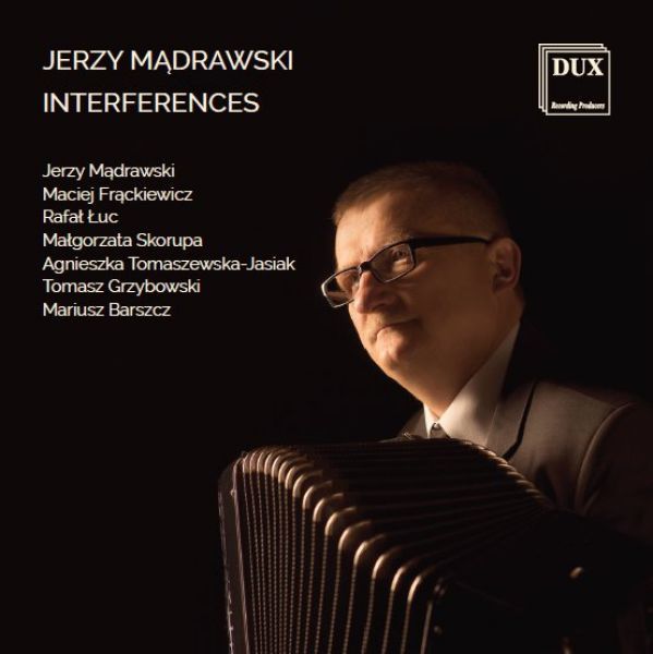 Jerzy Mądrawski jest postacią bardzo cenioną w środowisku akordeonowym. Ma w dorobku wiele płyt (przede wszystkim z muzyką kompozytorów polskich), od 1980 r. zajmuje się również pracą pedagogiczną. Po wielu latach wspaniałej kariery wirtuozowskiej jego aktywność artystyczna rozszerzyła się intensywnie w kierunku komponowania. Płyta Interferencje jest dokumentacją dorobku kompozytorskiego Jerzego Mądrawskiego z ostatnich lat i obejmuje siedem utworów na różne składy kameralne. Tytułową interferencję można można rozumieć jako nakładanie się wielu cech stylistycznych, w wyniku którego powstaje zjawisko nowe, spójne, harmonijne. Twórczości Mądrawskiego nie sposób bowiem zaszufladkować do określonej stylistyki. Koegzystują w niej elementy tradycyjne, inspirowane folklorem, idiom wypracowany przez Astora Piazzollę oraz środki nowoczesne - wyrafinowana rytmika i niemal sonorystyczna aura brzmieniowa. Warto zwrócić uwagę także na tytuły kompozycji. Odkrywanie związanych z nimi asocjacji, stanowi intelektualną przygodę zarówno dla wykonawcy, jak i słuchacza.