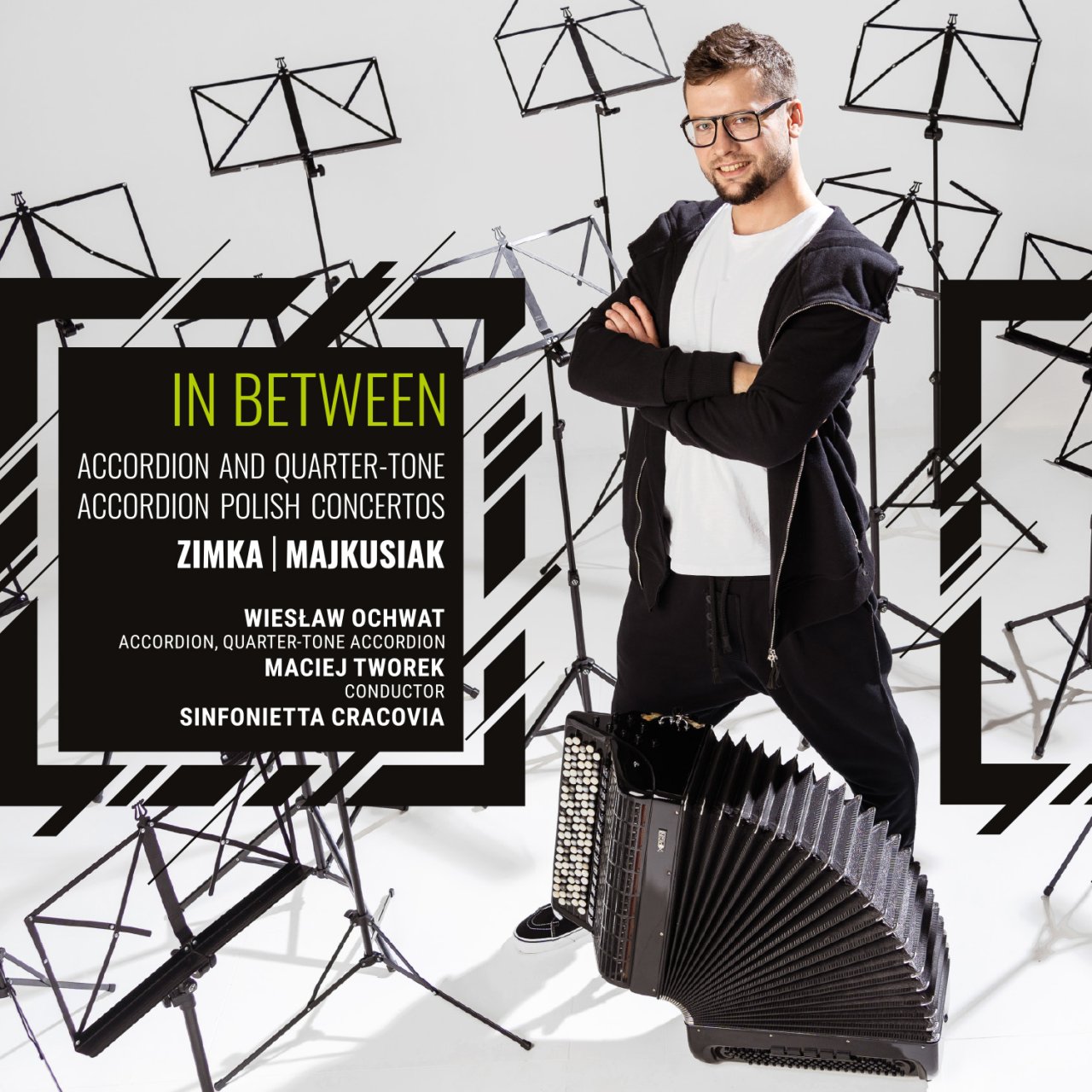 Na płycie znalazły się dwa koncerty. Pierwszy – Concerto Macieja Zimki – z autorską kadencją solisty Wiesława Ochwata. Drugi – Concerto in Between Mikołaja Majkusiaka – wykorzystujący akordeon ćwierćtonowy, który solista posiada w swojej kolekcji.