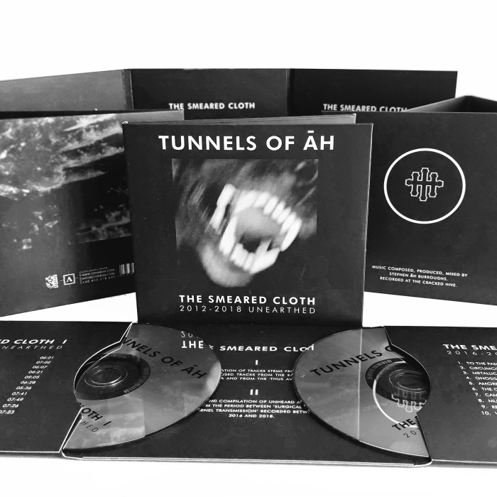 „The Smeared Cloth” to dwupłytowa kompilacja zawierająca nagrania TUNNELS OF ĀH, zarejestrowane w latach 2012-2018, które nie doczekały się dotąd publikacji na żadnym nośniku. Pierwszy krążek wypełniają kompozycje, pochodzące z okresu jeszcze przed debiutem w Cold Spring oraz tzw. odrzuty z sesji do „Thus Avici”, czyli następnej w kolejności płyty dla brytyjskiego labelu. Drugi krążek to utwory zarejestrowane w trakcie i pomiędzy sesjami do „Surgical Fires” i „Charnel Transmissions”. Mimo, iż powstawały one jako luźne kompozycje, w oderwaniu od konceptów, wyraźnie nakreślonych na każdym z wymienionych wcześniej albumów, brzmią one niesłychanie spójnie, sprawiając wrażenie jakby elementów, z których zbudowano większą całość. Dzięki temu słucha się ich bardzo dobrze; zwłaszcza, gdy pozwolimy sobie na chwilę, by w pełni móc zatracić się w świecie, wykreowanym przez Stephena Ah Burroughsa za pomocą dźwięków, charakterystycznych dla jego twórczości. Niekiedy przywołują one skojarzenia ze starożytnymi rytuałami, potęgując wrażenie egipskich ciemności, poczucie chłodu i pustki wydobywającej się jakby z głębokiego lochu, a wraz z nimi echo. To wszystko stanowi nadbudowę dla 21 utworów, wypełniających oba krążki, nakreślonych i utrzymanych w konwencji, pozwalającej na umiejscowienie ich stylistycznie, gdzieś pomiędzy izolacyjnym dark ambientem a death industrialem, gdzie mroczna aura i gęste, mechaniczne struktury współistnieją niczym w symbiozie, dzięki której zachowana została równowaga pomiędzy budowaniem klimatu, a oddaniem prawdziwej natury industrialnego zgrzytu.