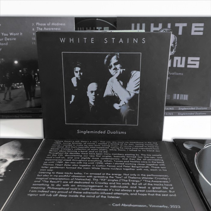 WHITE STAINS zaistniał w świadomości wielu słuchaczy dzięki regularnemu debiutanckiemu albumowi, nagranemu wspólnie z Psychic TV "Live At Stockholm". Jednak historia tego zespołu i jego metamorfoz sięga dużo dalej. Powołany przez Carla Abrahamssona ansambl od początku służył jako narzędzie do głoszenia manifestów zainspirowanych twórczością m.in. Aleistera Crowleya (White Stains to tytuł jednego z ciekawszych tekstów brytyjskiego maga) i innych głosicieli wolnej myśli. O ile poruszane przez nich zagadnienia niezmiennie skupione były wokół tematyki okultyzmu i wiedzy tajemnej, o tyle w warstwie muzycznej zespół przechodził wiele metamorfoz: od occult/gothic rocka poprzez ambient po eksperymentalną elektronikę. Z czasem gdy wykrystalizował się ich styl, Carl wraz z Thomasem Tibertem przemianowali White Stains na Cotton Ferox, otwierając kolejny rozdział ich aktywności artystyczno-magicznej. Niniejsza publikacja otwiera cykl wznowień szwedzkiej grupy. Stanowi ona zbiór wszystkich krótkich form, poprzedzających ich debiut, które ukazały się w latach 1987-1989 jedynie na winylowych 7" i 12" EP . Do tej pory nie były one dostępne na żadnym innym nośniku. Całość została opatrzona właściwym komentarzem Carla Abrahamssona, będącym świetnym wprowadzeniem do wysłuchania materiału, wskazującym na kontekst w jakim powstawały zawarte na nim kompozycje.