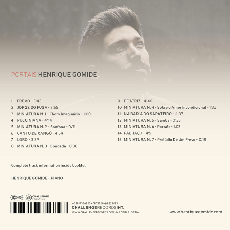 "Henrique Gomide is one of the most refined and creative musicians I have ever met. I have been lucky enough to witness his trajectory from a young age and his pianism has always inspired me. Listening to his new album, Portais, I had the feeling of strolling through worlds that are so Brazilian and yet so personal. Henrique's genius is latent and is expressed in a profound and intimate universe, in which the musical discourse and its sound elements unfold into countless dimensions."