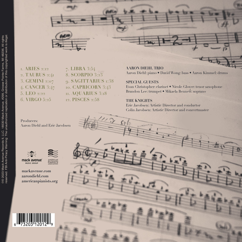On his latest album, Zodiac Suite, Diehl pays homage to composer/pianist Mary Lou Williams while unearthing new possibilities and pathways from one of her landmark works. Joined by the orchestral collective The Knights and special guests Evan Christopher (clarinet), Nicole Glover (tenor sax), Brandon Lee (trumpet), and Mikaela Bennett (soprano), Diehl breathes vibrant new life into a masterwork that the composer herself was never able to fully realize during her lifetime.