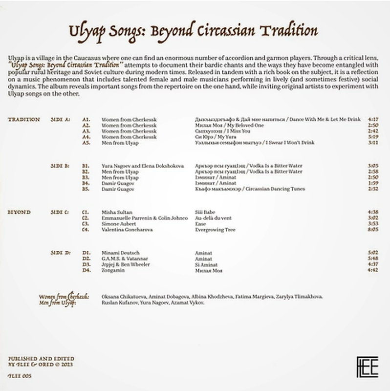 Musically, the double LP conists of rare and unpublished archives as well as recordings made by FLEE, Ored recordings and Nikita Rasskazov over the last years in various locations of the Caucasus. These original celebration and drinking songs performed by group of professional and amateur musicians alike have been used as a creative fabric by sonic sound artists and musicians.