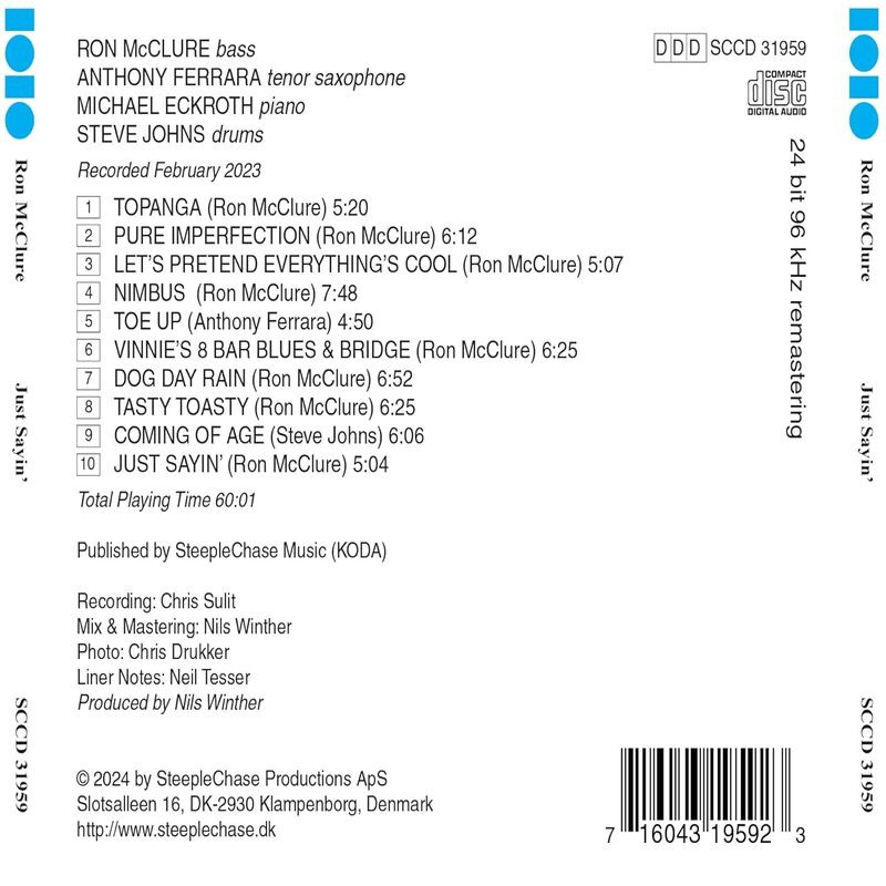 One thing the veteran bassist/composer Ron McClure cannot stop doing is writing music, the latest album embodies eight tunes by this prolific composer including the famous "Nimbus" which he wrote at age 15 but has never recorded himself before. Ken Dryden of All About Jazz remarks: "After nearly six decades on the jazz scene, McClure is recognised for inventive improvising, creative compositions in a wide variety of settings and immaculate tone."