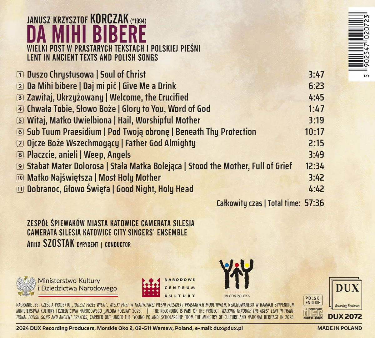 Płyta zawiera kompozycje Krzysztofa Korczaka, kompozytora młodego pokolenia, który istoty sacrum poszukuje w dźwięku rozumianym jako wyrażanie, nie zaś opisywanie stanów duchowych. Sprostanie wymogom muzyki liturgicznej przy zachowaniu oryginalności języka muzycznego stanowi wyzwanie z racji przestrzeni, w której jest ona wykonywana. W przypadku Korczaka indywidualność zaznacza się w szczególnie bogatej, czasem zaskakującej harmonii, która wzbogaca pozornie proste, niekiedy wręcz surowe melodie.