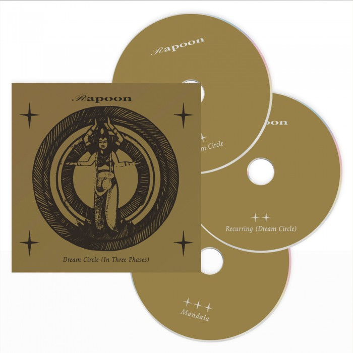 Z dumą prezentujemy wyjątkową publikację RAPOON "Dream Circle" (In three Phases)" specjalną edycję debiutanckiego albumu Brytyjczyka, zawierającą w sumie 3 płyty CD: zremasterowaną wersję "Dream Circle", sequel "Recurring (Dream Circle)" oraz przygotowany specjalnie z myślą o tym wydawnictwie, krążek "Mandala", stanowiący rozwinięcie formuły zawartej na wcześniejszych wydawnictwach. Podobnie jak w przypadku przygotowanych przez nas kilka lat temu rozszerzonych reedycji RAPOON ("Vernal Crossing Revisited" czy "The Kirghiz Light") przyświecała muzykowi podobna idea. Podobnie jak tam, tutaj również do zarejestrowania nowych utworów Robin Storey sięgnął do swojego archiwum, by wydobyć z niego ścieżki i banki brzmień, którymi posługiwał się podczas tamtejszych sesji blisko 30 lat temu, by posłużyć się nimi w zgoła inny sposób. Wszystko po to, by z ich pomocą skomponować zupełnie nowy, ciekawy, a przy tym koherentny materiał muzyczny. "Mandala" z równą intensywnością co "Dream Circle" i "Recurring..." wciąga słuchaczy do mistycznej podróży na Bliski Wschód. Zestawione w ten sposób krążki zamykają tryptyk rozpoczęty na samym początku działalności Rapoon. Ta unikatowa trylogia wydana została w czarno-złotym 8-panelowym digipacku.