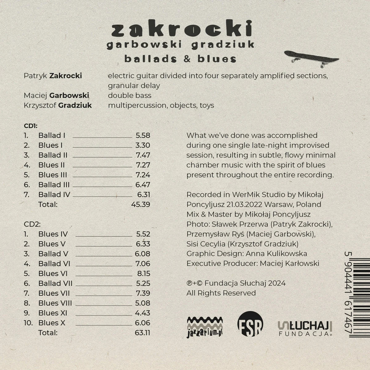 Patryk Zakrocki – jeden z najważniejszych improwizatorów, kompozytorów i artystów dźwiękowych w Polsce, a ostatnio także gitarzysta oraz Maciej Garbowski i Krzysztof Gradziuk - członkowie najlepszego trio fortepianowego RGG na polskiej scenie, to muzycy reprezentujący zupełnie inne muzyczne światy.