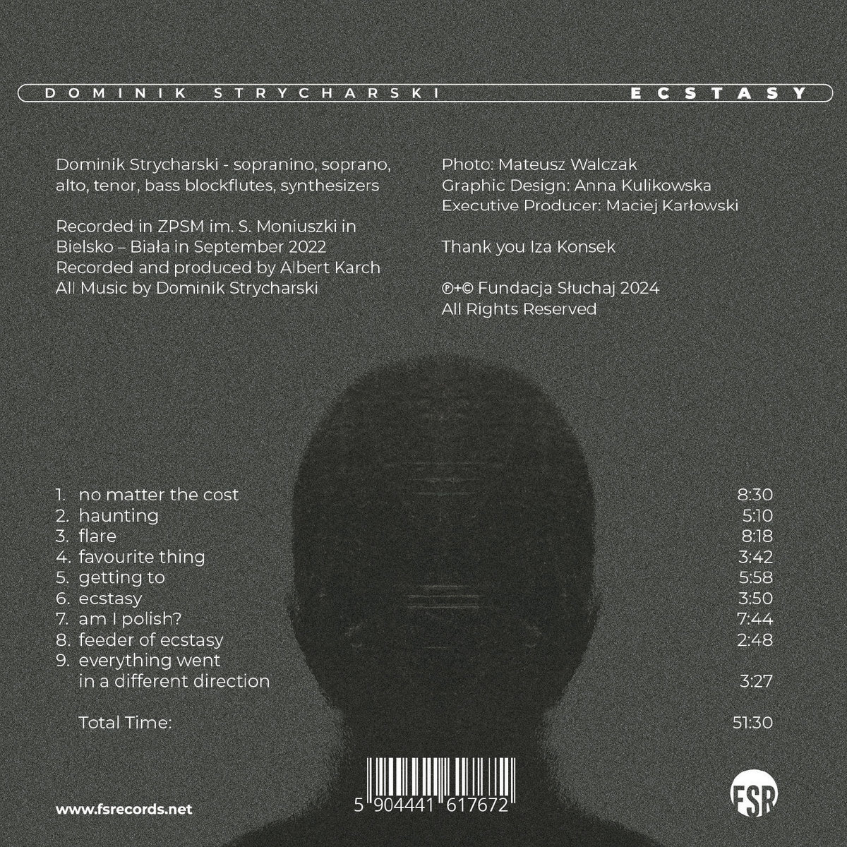 Dominik Strycharski, jeden z najwybitniejszych współczesnych improwizatorów grających na flecie prostym, pojawia się w katalogu wydawnictwa Fundacji Słuchaj! dość regularnie. Prawie dekadę temu ukazała się płyta z jego udziałem, Myriad Duo, nagrana z wirtuozem gitary basowej Rafałem Mazurem, jakiś czas później solowy recital Flauto Dolphy, poświęcony muzyce wielkiego Erica Dolphy'ego. A potem October Suite, płyta dokumentująca jubileuszowy koncert formacji RGG, podczas którego Dominik był gościem specjalnym obok wokalistki Marty Grzywacz i trębacza Artura Majewskiego. Teraz czas na kolejny solowy recital. Tym razem jednak na płycie znalazły się utwory napisane przez Dominika i zanurzone w elektronicznej przestrzeni jego pomysłu.