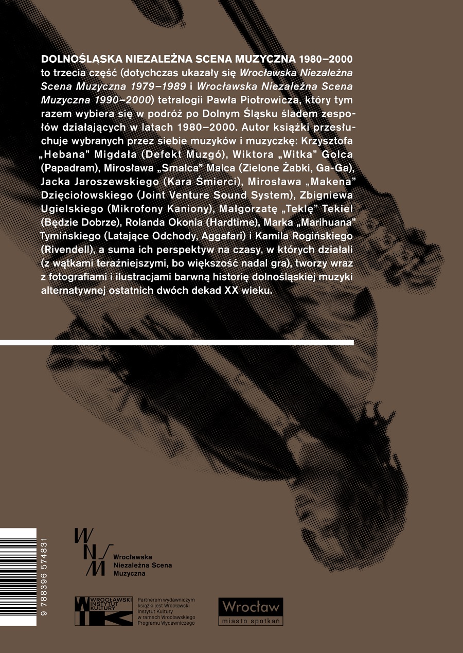 Dolnośląska Niezależna Scena Muzyczna 1980–2000 to trzecia część (dotychczas ukazały się Wrocławska Niezależna Scena Muzyczna 1979–1989 i Wrocławska Niezależna Scena Muzyczna 1990–2000) tetralogii Pawła Piotrowicza, który tym razem wybiera się w podróż po Dolnym Śląsku śladem zespołów działających w latach 1980–2000.