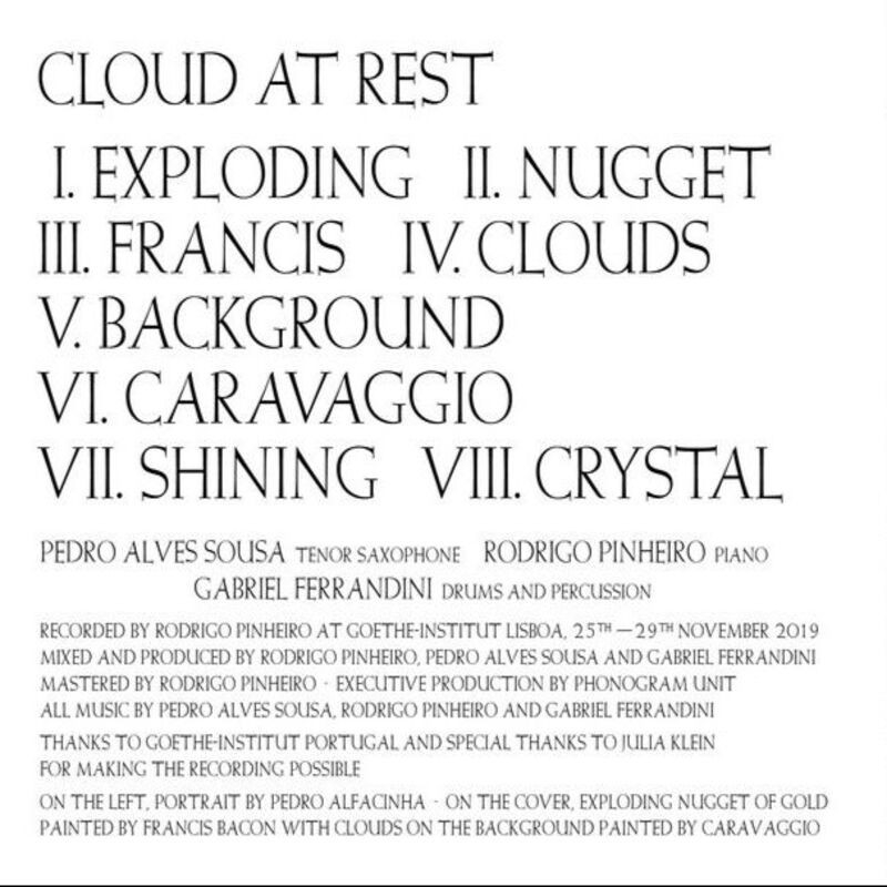 Recorded over four days in Portugal’s Goethe Institute in November, 2019, this captures a highly interactive trio made up of distinguished Lisbon improvisers with a significant shared history. Pianist Rodrigo Pinheiro and drummer Gabriel Ferrandini began their partnership in the Red Trio with bassist Hernani Faustino in 2008. When they recorded their tenth anniversary Celebration Band (No Business), tenor saxophonist Pedro Alves Sousa was among the saxophonists. Sousa appears in Ferrandini’s trio Volúpias (Clean Feed); Luís Lopes’ nine-member Lisbon Freedom Unit (Clean Feed) included all three, as does the recently released 2012 workshop orchestra, Evan Parker "X-Jazz Ensemble," playing A Schist Story (JACC). Sousa and Ferrandini have also played as a duo, happily dubbed Peter/Gabriel.