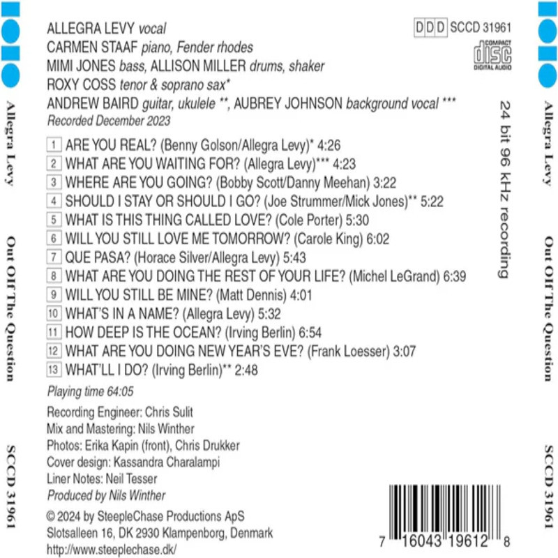 Jeśli już mamy za sobą dylematy kulturowe posłuchajmy najnowszej płyty Allegra Levy "Out Of The Question", nagranej z udziałem pianistki Carmen Staaf, basistką Mimi Jones, perkusistką Allison Miller i zaproszonych gości.
