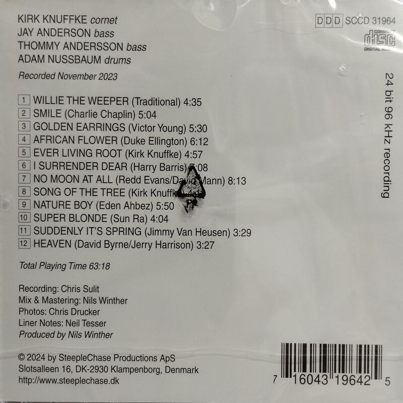 Nieoczywisty kwartet z dwoma kontrabasistami w składzie - Jay Anderson (lewy kanał) i Thommy Andersson (prawy kanał), plus za perkusją gigant kreatywnego drummingu - Adam Nussbaum. Panowie znają się doskonale, grali ze sobą wielokrotnie, wystarczy wspomnieć doskonałą "Cherryco" tria Kirk Knuffke, Jay Anderson, Adam Nussbaum (SteepleChase, 2017). Wyraziste osobowości ścierają się, napędzają wzajemnie, posuwają muzyczną narrację w nieoczekiwanych kierunkach. Zderzenie perspektywy odmiennych pokoleń daje zaskakująco głęboki wgląd w proces twórczy jazzu.