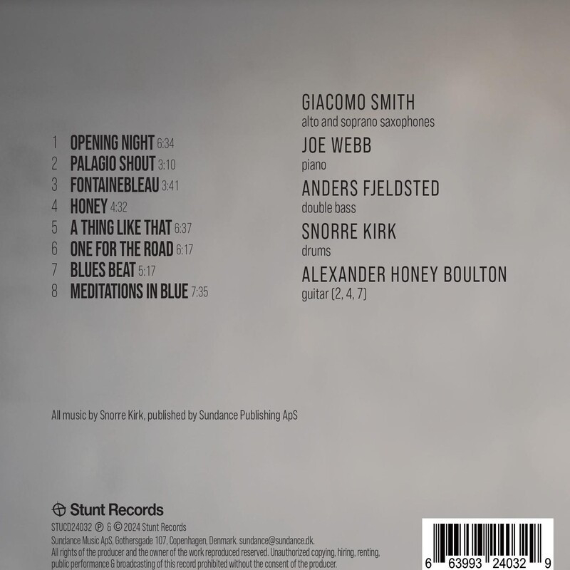 Tym razem słyszymy kwartet, w trzech utworach rozszerzony do kwintetu o nowozelandzkiego gitarzystę Alexandra 'Honey' Boultona.