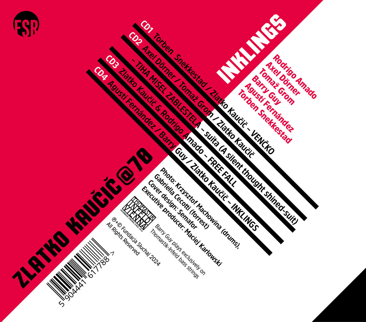 If it can be said of someone that he is more than a musician, more than an improviser, more than an artist then it can certainly be said of Slovenian drummer Zlatko Kaucic. Zlatko is a good spirit, he is a man who not only goes down in musical history as a partner of the greatest artists of improvised music, but also as a good spirit. As someone who, when he plays and when he enters a room, the world becomes brighter, wiser and arranged as it should be. This year Zlatko Kaucic turned 70 and his light shines with the same strength! You will find out by listening to these four recording sessions!