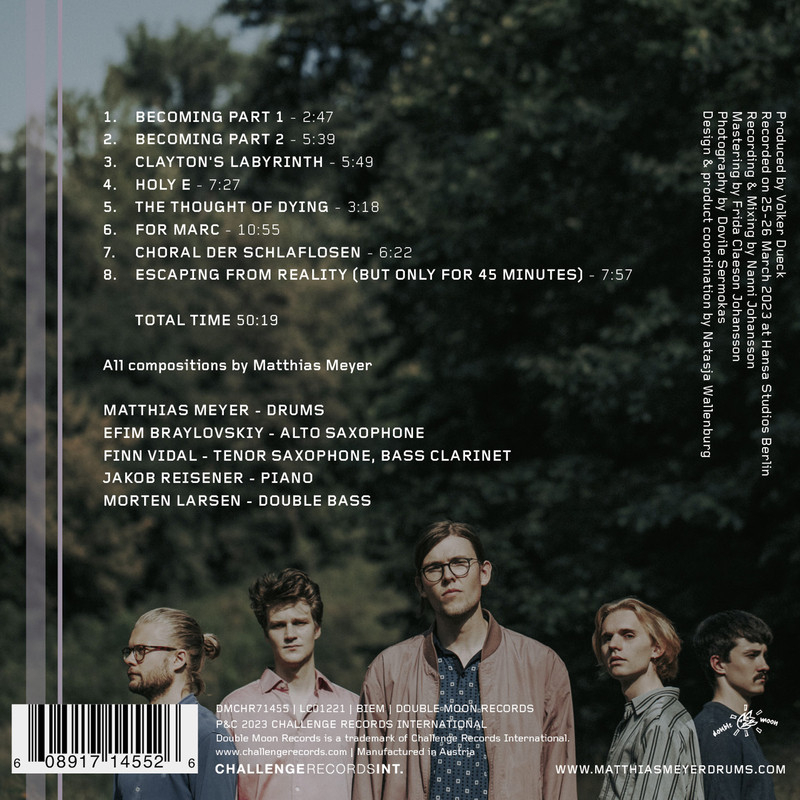 This goes back to the early corona period with its restrictions, which also and to a particularly large extent affected many creative artists. Shortly before the pandemic, Matthias Meyer had moved from Hanover to Berlin to complete the next stages of his development in the vicinity of the renowned Jazz Institute Berlin. Within a few months, he found himself in a kind of no man's land, a seemingly unreal stage of forced standstill and isolation, somewhere between emptiness and hope. It was an experience with a cathartic effect. He laid the foundation for his further creative path in that phase, in esthetic terms as well as with a view to the self-confidence to pursue his emerging musical vision.