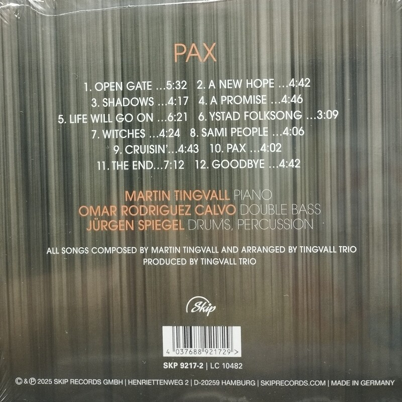 Po wielu wyprzedanych trasach koncertowych i ponad dwóch dekadach fonograficznej aktywności (osiem wielokrotnie nagradzanych studyjnych płyt plus jedna koncertowa), Tingvall Trio powraca z nową płytą. Pierwszy singiel "Cruisin’" z nadchodzącego albumu "PAX" ukazał się 20 czerwca 2025 roku – to pełen energii utwór, który oddaje charakterystyczne dla tria połączenie pełnych wigoru melodii i porywających rytmów.