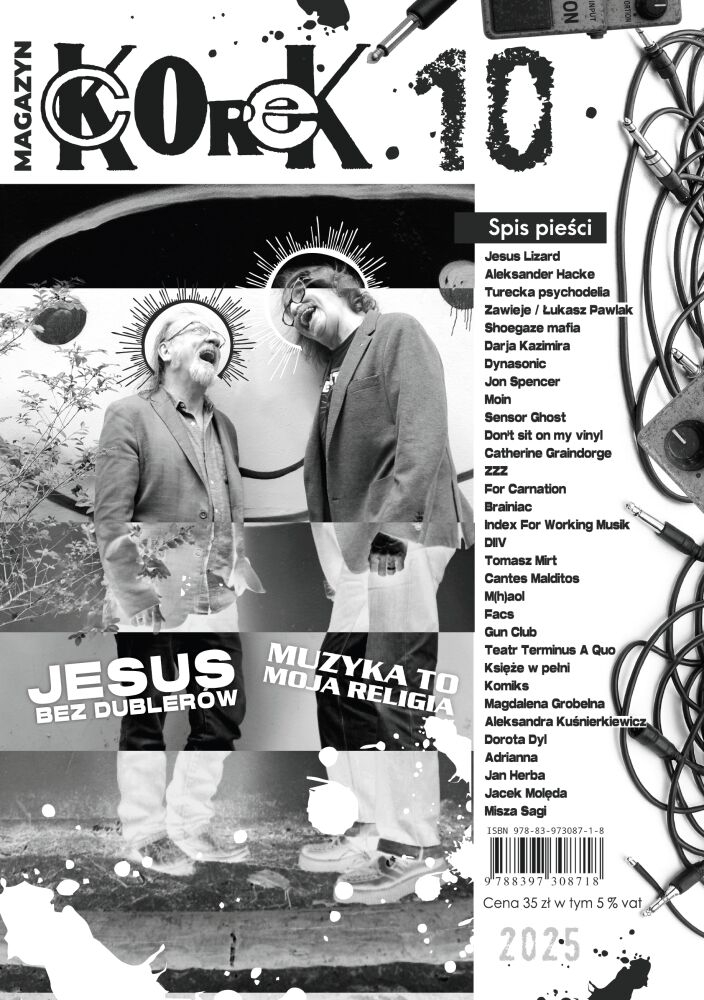Początkowo miało to być 48 stron, myślimy sobie: uff dużo roboty, trzeba to zapełnić dobrymi treściami bez zapachjdziur. Po jakimś czasie okazało się, że musimy rozszerzyć objętość do 64 stron, no dobra. Potem stanęło na 72, ale znów było tak ciasno jak w japońskim metrze, więc ostatecznie stanęło na 80 stronach A4!!!. Są wywiady, artykuły przekrojowe o artystach lub zjawiskach, są recenzje i jest oczywiście poezja, są grafiki, są zdjęcia. Wygląda to naprawdę solidnie. Mamy nadzieję, że gdy weźmiecie do ręki KOREK - Magazyn, również uznacie, że nie poszliśmy na łatwiznę. Okładka i papier - takie same (piękne i miłe w dotyku) jak w Antologii (której zapas się kończy nieubłaganie), zero reklam i zapchajdziur, samo gęste!