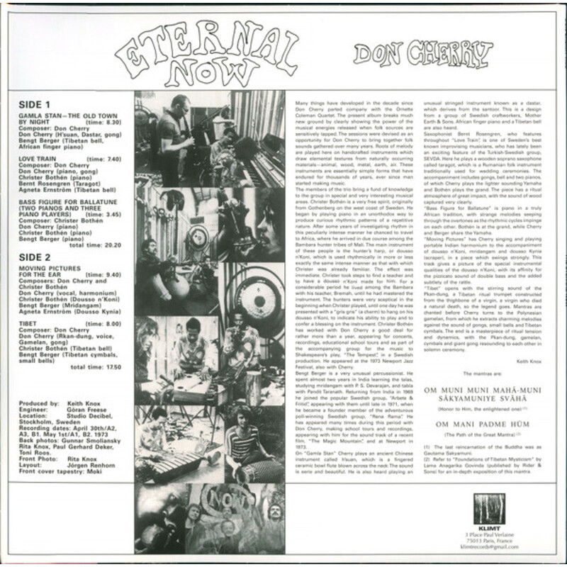 Something of a sequel to Eternal Rhythm, his classic meeting of free jazz and world music from five years prior, Eternal Now found Don Cherry entering the studio for the tiny Sonet label, once again with members of the European avant-garde scene (this time from Sweden).