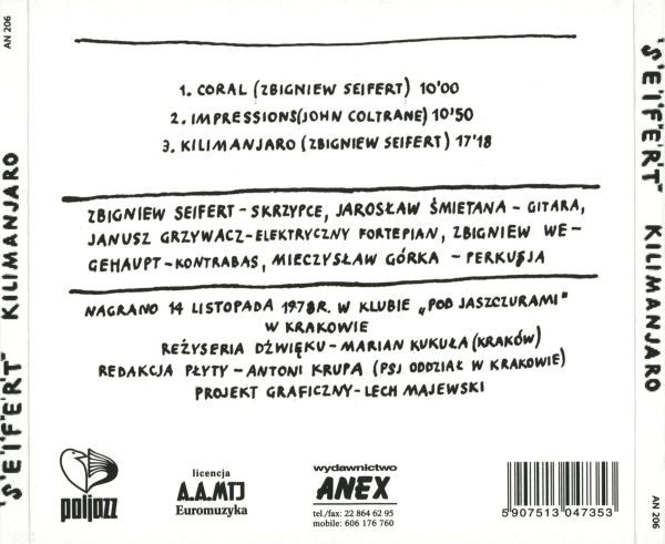 Zbigniew Seifert - viol, Jaroslaw Smietana - gtr, Janusz Grzywacz - el.p, Zbigniew Wegehaupt - b, Mieczyslaw Gorka - dr