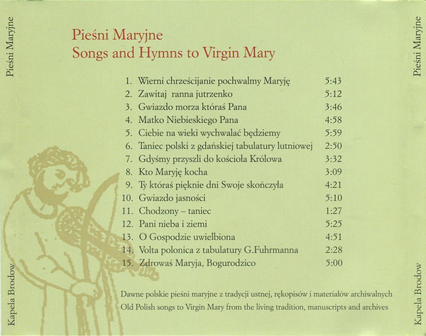 "Wydana przez Kapelę Brodów płyta, zawierająca ludowe pieśni maryjne, jest jedną z wielu, które ukazały się w ostatnim czasie. Repertuar ten jednak, a także sposób jego wykonania, ma w sobie coś, co wyróżnia go z pośród innych, podobnych prezentacji. Na uwagę zasługuje przede wszystkim dobór pieśni, które w większości należą do najstarszych, sięgających od XVII do XIX wieku przekazów tego gatunku. Teksty pełne poetyckich metafor zawierają w sobie głębię teologicznej myśli wyrażoną prostym, zrozumiałym dla ludu językiem, nie pozbawionym jednak swoistego piękna charakterystycznego dla staropolskiej liryki. Melodie, poprzez „szlachetność” rysunku linii melodycznej, czerpią wątki i motywy ze spuścizny chorałowej, która przez wieki kształtowała porządek stylistyczny kościelnej muzyki. Melodie te przejęte, przyswojone przetworzone przez ludowych wykonawców a zarazem odbiorców do dziś stanowią swoisty normatyw poczucia sakralności, ciągle jeszcze obecny w intuicyjnym poczuciu estetyki w tradycyjnej kulturze muzyczno-religijnej. (...)"