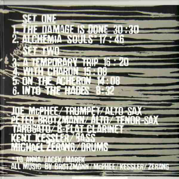 Peter Brotzmann: alto & tenor saxes, tarogato, B-flat clarinet
