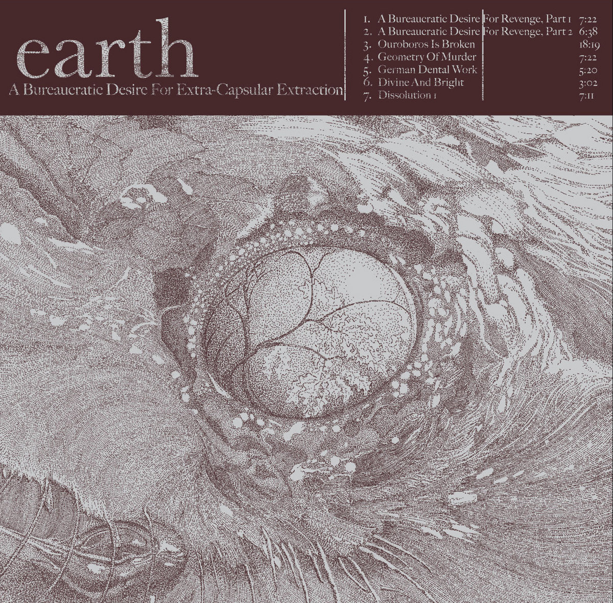 ‘A Bureaucratic Desire’ zawiera pierwsze archiwalne nagrania studyjne Earth pochodzące z sesji w studiu formacji Smegma z 1990 roku. Poprzednio nagrania znajdujące się na tej płycie były rozrzucone na EPce ‘Extra Capsular Extractions’ oraz CD ‘Sunn Amps and Smashed Guitar’. Esencjonalny wstęp do twórczości Earth oraz możliwość wglądu w narodziny ruchu, którego echa rozbrzmiewają na każdym kroku we współczesnej muzyce gitarowej.