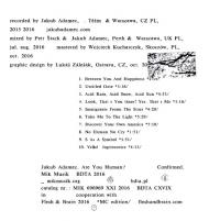 Jakub Adamec on his new album „Are You Human? Confirmed.“ tells us some stories. Concept is based on secret messages hidden in CAPTCHA forms, what they reveal, what they keep. This is a kind of remote poetry of our times, net-bots telling weird stories, sometimes we can understand what they say, in some cases information stays well kept. Your eyes only.