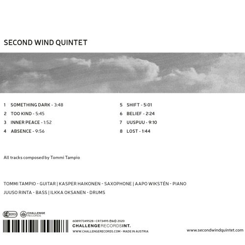 Founded in 2015, Second Wind Quintet is an instrumental group of talented Finnish musicians led by guitarist and composer Tommi Tampio. The group based in Helsinki, lined up with double bass (Juuso Rinta), drums (Ilkka Oksanen), piano (Aapo Wikstén), saxophone (Kasper Haikonen) and guitar (Tommi Tampio), combines elements from modern jazz, folk and cinematic music without worrying about crossing genres. The group members’ different musical backgrounds provide interesting conditions for colourful improvisation and interaction. Tampio’s compositions are largely influenced by the music of Brian Blade Fellowship and Pat Metheny, amongst others.