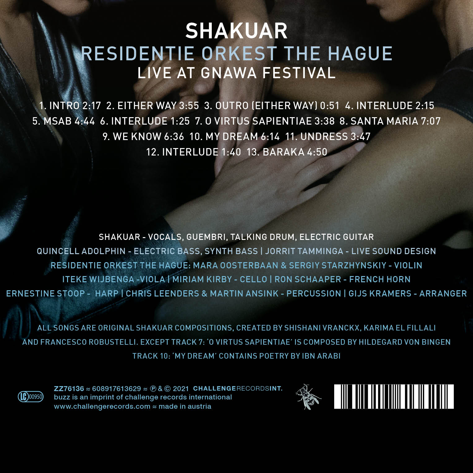 Tym razem mamy okazję posłuchać koncertowego nagrania, do którego doszło 12 września 2020 roku w De Nieuwe Kerk w Hadze. Niecodzienne spotkanie marokańskich muzyków, reprezentujących oryginalną tradycję Gnawa, członków jednej z najbardziej utytułowanych europejskich klasycznych orkiestr - założonej w 1904 Residentie Orkest. Skład uzupełnili przedstawiciele holenderskiej alternatywy, zespół Quincell Adolphin i Jorrit Tamminga.
