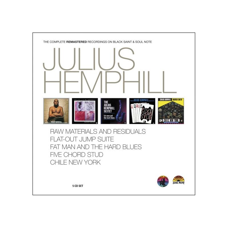 Composer and saxophonist Julius Hemphill recorded five albums for the Black Saint and Soul Note labels between 1977 and 1993. He began his tenure with Giovianni Bonandrini about a year after founding the World Saxophone Quartet. This box contains those five recordings in glorious, remastered sound. Raw Materials and Residuals was issued on Black Saint in 1978 and featured Hemphill on alto and soprano saxophone, in the company of Art Ensemble of Chicago drummer and percussionist Don Moye and cellist Abdul Wadud. It features five medium to long compositions of which the real notables are the labyrinthine "Mirrors" and the strange, bluesy, free jazz funk of "G Song." Though his duet album with percussionist Warren Smith, Chile New York, was recorded in May of 1980, it wasn't released until 1998, three years after Hemphill's passing. Its seven pieces are numbered, and though credited as Hemphill compositions, they feel very much like improvisations. Three of these pieces run from just under to just over the 20-minute mark. Flat-Out Jump Suite was recorded a month later. Wadud and Smith appear in the quartet along with trumpeter Olu Dara. Its five parts aligned with aspects of sensual awareness in mind and body; Hemphill plays flute and tenor saxophone on the recording