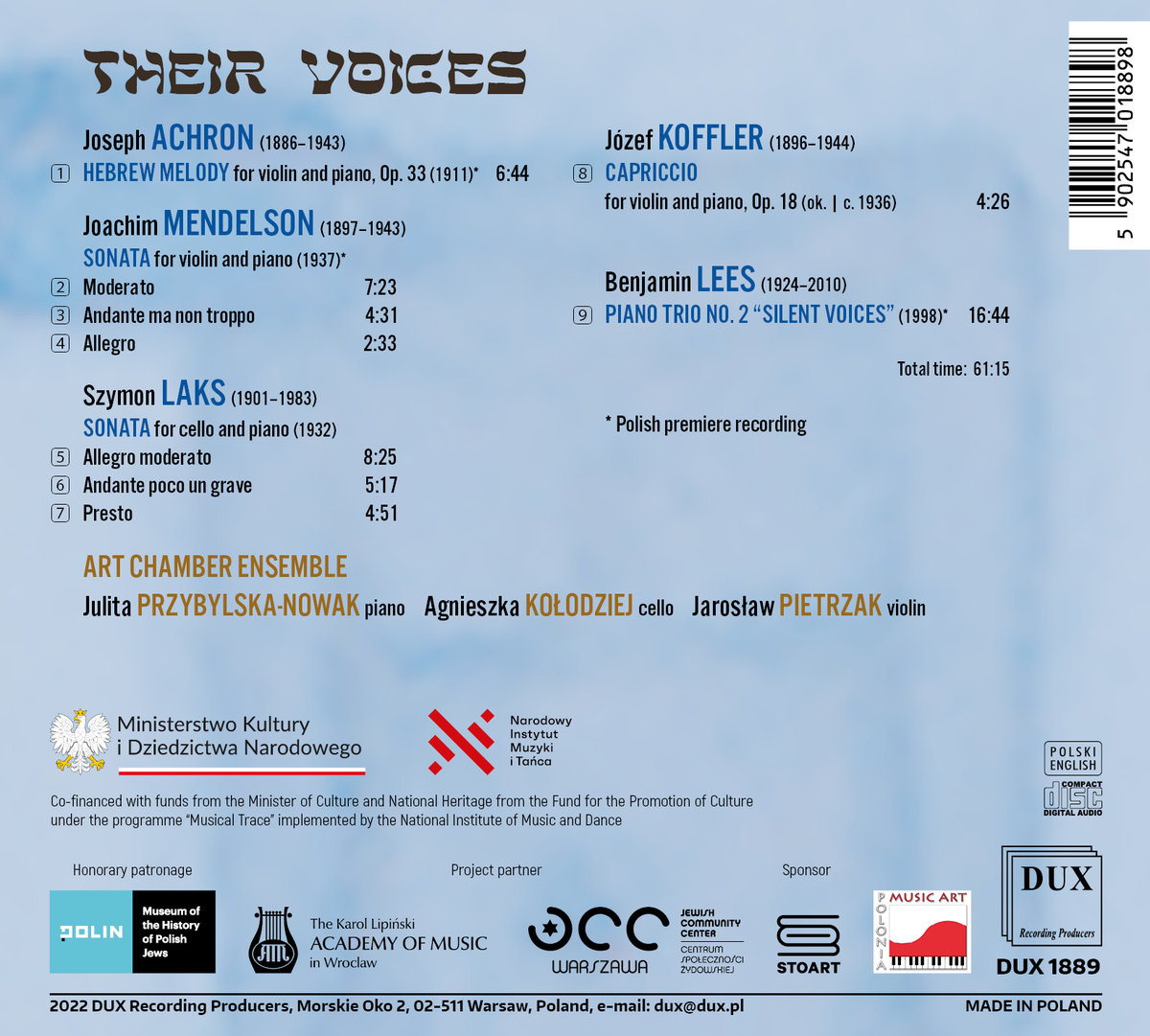 Julita Przybylska-Nowak piano, Agnieszka Kołodziej cello, Jarosław Pietrzak violin |