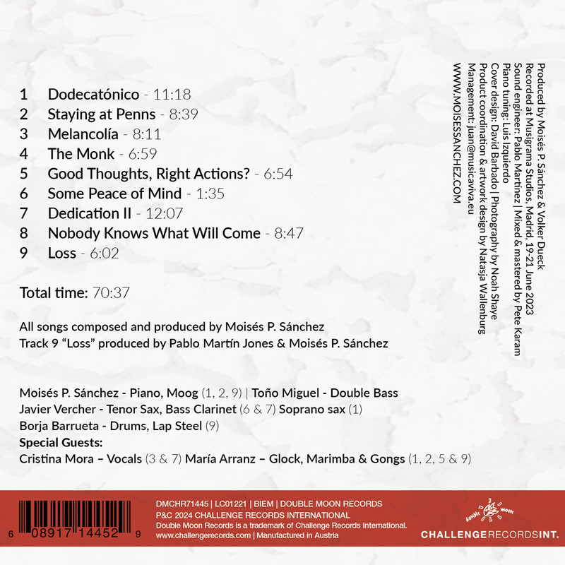 His new album "Dedication II" is an expansive affair (nine long songs provide a playing time of 73 minutes) and covers a lot of musical landscapes. Chick Corea once said that he made music to make people happy, and Moisés P. Sánchez can certainly concur with this viewpoint. And "Dedication II" – the first "Dedication" album was released with the same line-up – is a bit reminiscent of the music of Chick Corea, who was open to the most diverse influences. In addition to Sánchez, the band includes tenor saxophonist and bass clarinetist Javier Vercher, bassist Toño Miguel, drummer Borja Barrueta and singer Cristina Mora. "I have been working with Cristina for almost ten years," Sánchez said, "and I have known her music for a long time. She gets along well with the other musicians and that is very important, because her voice is like an additional instrument. I like that very much." Mora can be heard on the title track, with more than twelve minutes the longest piece of the album, as well as on the mysterious "Melancolía".