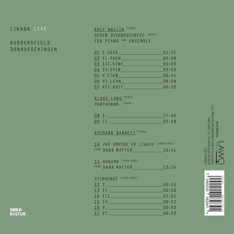 Ich najnowsza płyta ukazuje się w barwach norweskiej oficyny LAWO Classics i zawiera nagrania Rolfa Wallina (b.1957), Klausa Langa (b.1971) i Richarda Barretta (b.1959).