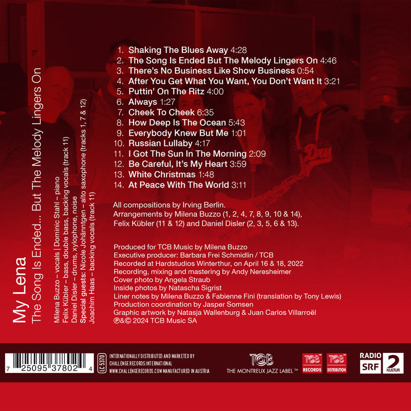 For many years, the jazz quartet My Lena has been arranging standards from the Great American Songbook as well as pop tunes by various songwriters. The band especially loves playing pieces by the renowned composer Irving Berlin. Even after his songs are over, the musicians still feel his melodies resonate lovingly. Because all the members of My Lena had revealed themselves to be Berlin-lovers over the years, they developed this album together – a playful program with arrangements of his unmistakable hits, lullabies and trouvailles of his lesserknown songs.