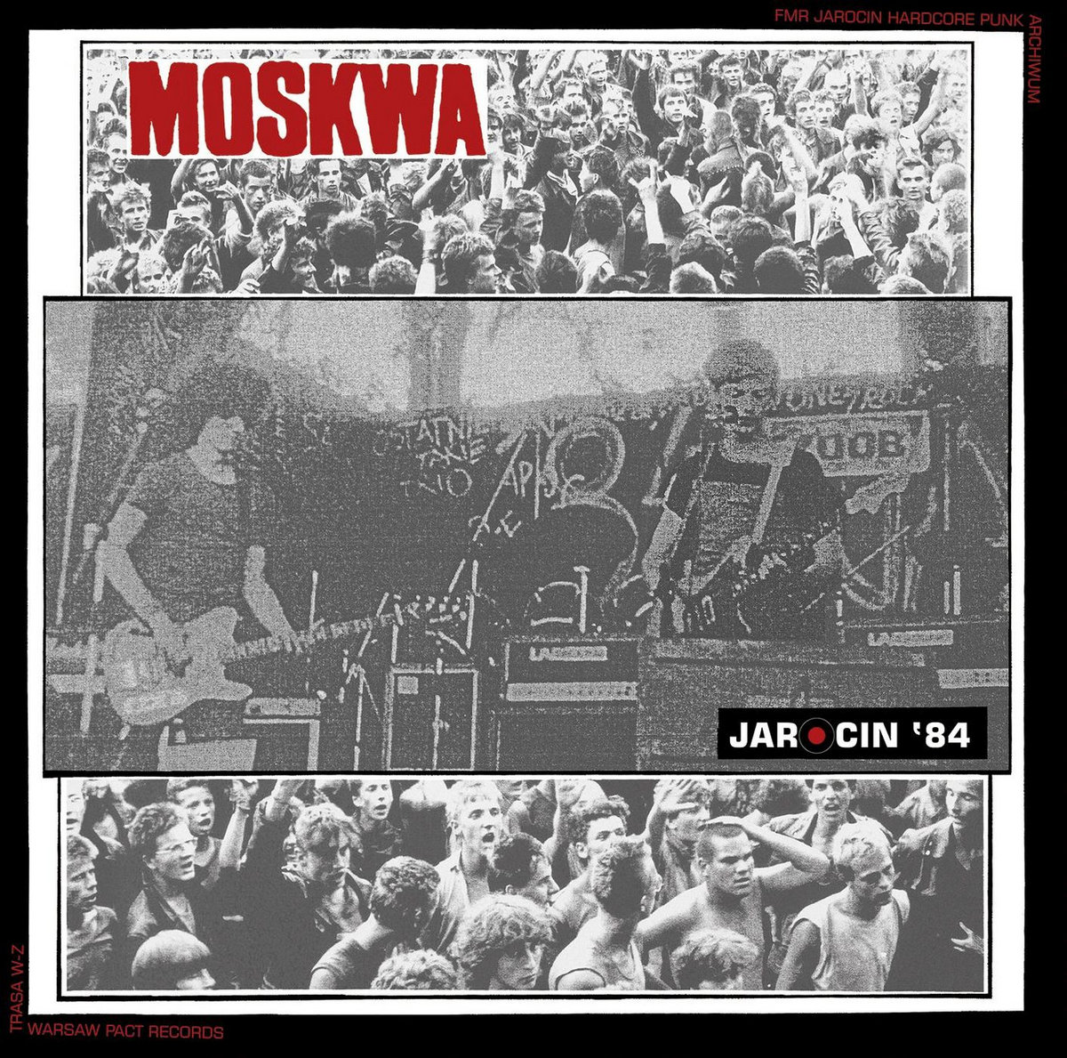 Kompletny zapis występów konkursowego i finałowego z Jarocina '84 łódzkiej formacji o dość prowokującej wtedy i dziś nazwie MOSKWA. Ich totalny czad wykonany podczas koncertu konkursowego sprawił, że zespół nie tylko trafił do ścisłej czołówki festiwalu i mógł zaprezentować się na dużej scenie, ale również uzyskał możliwość nagrania czterech numerów w studio Radia Łódź w tym samym roku (wydane na "Studio '84" 7" w WPR). Od tego właśnie momentu nazwa grupy wymieniana będzie jako absolutna czołówka polskiego Hardcore Punk przez kolejne dekady. Zespół stanie też stałym gościem na festiwalu w Jarocinie w kolejnych latach. Ten materiał z 84 roku po prostu urywa głowę. Intensywność wykonywanych numerów wskakuje stopniowo na kolejne poziomy, numery przechodzą z jednego w drugi, bez przerw i bez chwili na złapanie oddechu. Guma wjeżdża ze swoją zgrzytliwą gitarą i pełnym desperacji wokalem wykrzykując teksty o realnym niebezpieczeństwie wojną i nuklearną zagładą czy walce jednostki atakowanej przez wszechobecną propagandę i systemowy ucisk. Miażdżący bas Rogoza zwiastuje nadciągający koszmar. Pałker nabija szybkie tempo które sprawia, że zespół pędzi do przodu tak jakby nie miało być jutra. Poczuj to zagrożenie i już teraz rozejrzyj się za najbliższym schronem. Ani wcześniej, ani już nigdy później nikt z polskiej sceny nie zbliżył się do brzmienia i klimatu Discharge tak jak Moskwa na tym materiale.