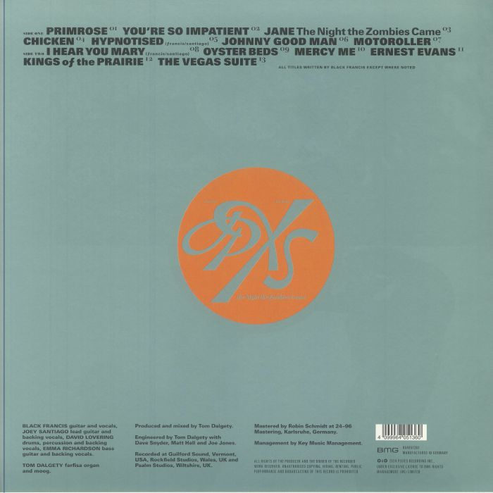 Pixies return with The Night The Zombies Came, their tenth album, marking 35 years since Doolittle cemented their place in alternative rock history. Building on the momentum of their 2022 album Doggerel, the band deliver 13 new tracks that prove to be among the most cinematic soundscapes of their career. The album weaves together eclectic themes like Druidism, apocalyptic shopping malls and medieval-themed restaurants. Black Francis, the band's primary songwriter, describes the album as a series of fragmented narratives that come together to form a kind of movie. The Pixies' trademark blend of surreal lyrics and dynamic "loud-quiet-loud" song structures remain intact, yet the new material explores fresh, imaginative territories. Having influenced iconic bands like Nirvana, Radiohead and Weezer, Pixies have long been a cornerstone of alternative rock and now, with Emma Richardson (formerly of Band of Skulls) joining as bassist after Paz Lenchantin's departure, they continue to evolve while maintaining their distinctive edge.