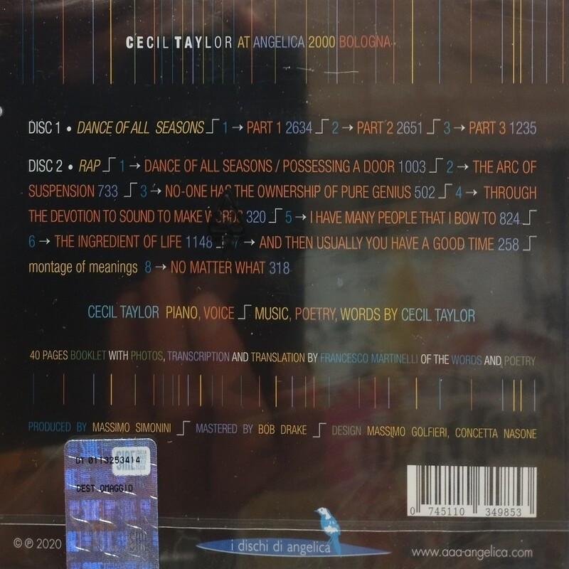 The additional uniqueness of this release is that it adds a second CD, titled Rap, to the recording of that memorable concert, which documents the public meeting-interview that Taylor agreed to give in Bologna on the following day.