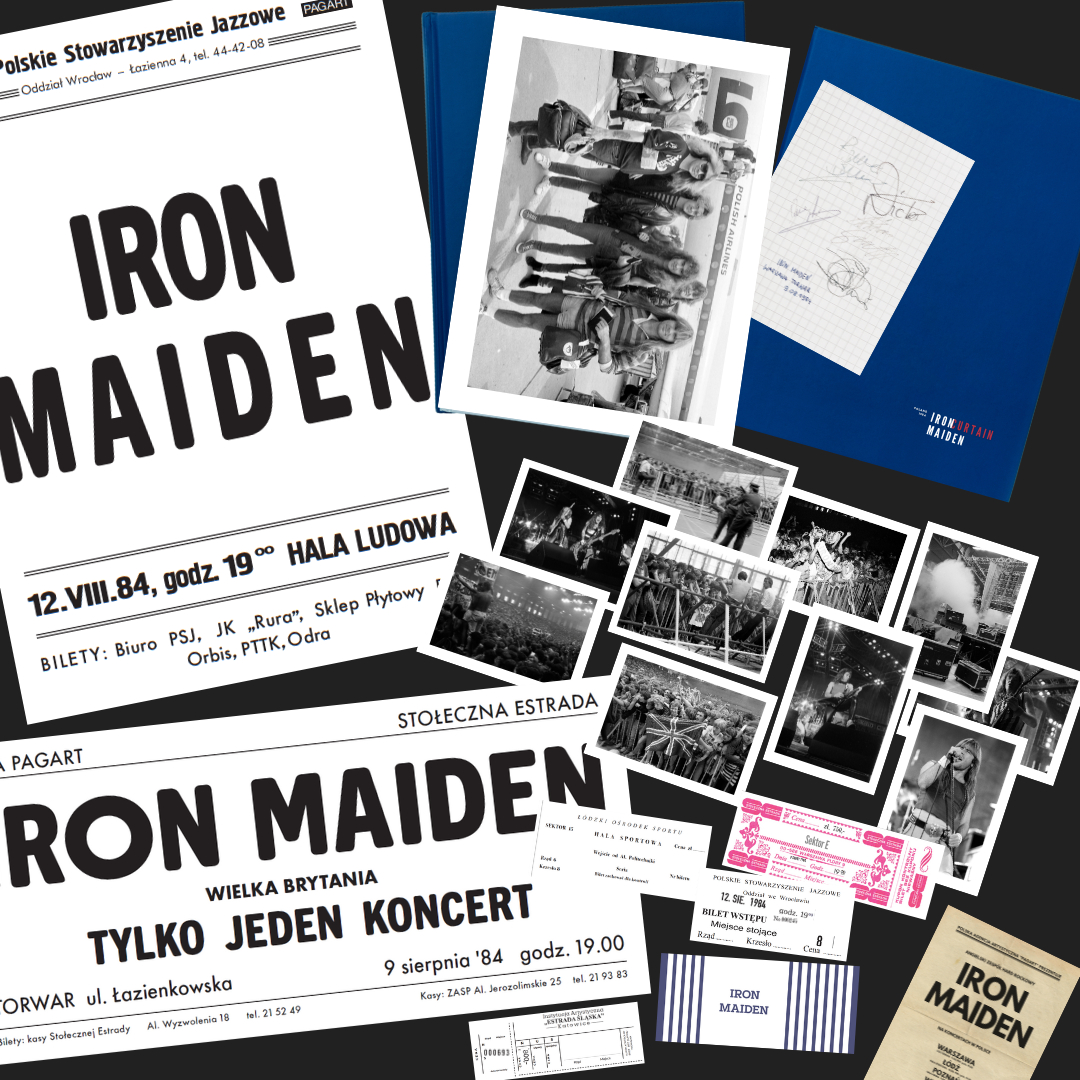 POSTERY: dwa reprinty (w skali 1:1) plakatów anonsujących koncerty zespołu Iron Maiden w Warszawie (9 sierpnia 1984 r., COS Torwar) i we Wrocławiu (12 sierpnia 1984 r., Hala Ludowa).