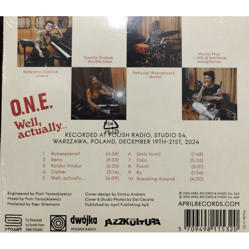Leading Danish contemporary jazz label April Records is proud to present Well, actually…, the third album from Polish acoustic jazz quartet O.N.E. Grounded in the spirit of democracy and collective improvisation, the album offers a tightly woven set of original compositions that blur the lines between modal jazz lyricism and the raw energy of free improvisation.