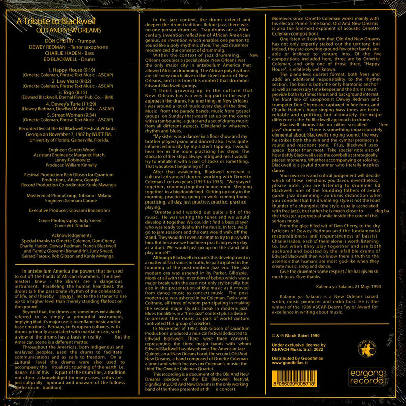 In Nov. 1987, a three-concert Ed Blackwell Festival was held in Atlanta. The festival served as a good excuse to reunite the members of Old And New Dreams (trumpeter Don Cherry, tenor-saxophonist Dewey Redman, bassist Charlie Haden and drummer Blackwell), a quartet comprised of Ornette Coleman alumni. The unit interprets three rarely-performed Ornette Coleman compositions and a tune apiece by Blackwell and Redman. All of the musicians are in top form on this no-changes music, creating fresh and intuitive melodies with both freedom and hints of the tradition.