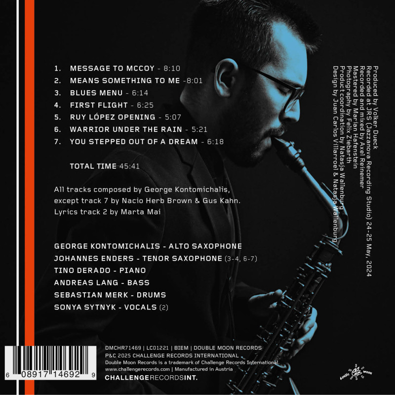 First Flight marks the debut album of saxophonist and composer George Kontomichalis. Rooted in jazz traditions like post-bop, hard bop, and modal jazz, it blends classic influences with modern improvisation and introspection. The album reflects the collective creativity of the ensemble, highlighting interplay, rhythm, and spontaneous exploration. With six original compositions and one standard, the record serves as a personal journey and an invitation for listeners to experience both energy and reflection